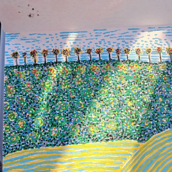 Such a funny morning in my studio today. I'm not sure how she snuck in--- but a tiny wren was flying about my studio and didn't want to leave (!). Biscuit, our pup, was going bonkers. We popped open a window and gently urged her to fly out.
